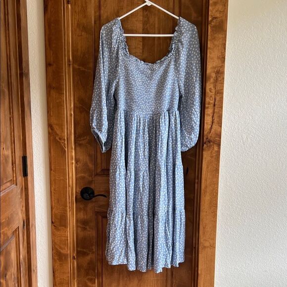 Torrid Light Blue Polka Dot Long Sleeve Dress