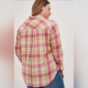 Torrid Lizzie Yellow And Pink Plaid Button-Up Shirt