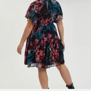 Torrid Mini Chiffon Ruffle Hem Skater Dress, size ride dye