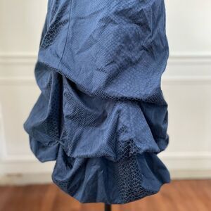 Torrid navy blue tone on tone snake print one shoulder cocktail dress with bubble hem. Side zip. Measurements are approximate and taken while laying flat: 39 inches shoulder to hem, 20 inches straight across the waist and 20.5 inches from armpit to armpit