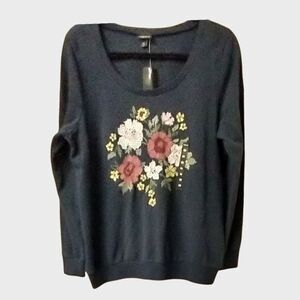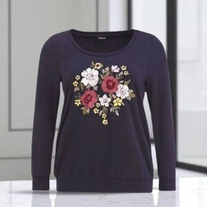 Torrid Navy Floral Embroidered Sweatshirt/Sweater