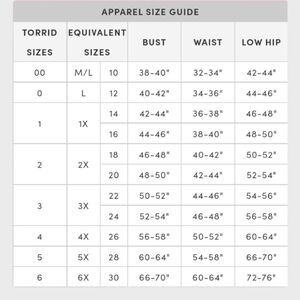 Torrid Size 00= M/L Bust: 42" & Length: 27". All measurements are Approximate & taken laying flat. I do not accept returns for approximate measurements. Also please make sure to read my above disclaimer in photos Thank you. 😀