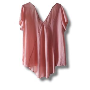 This Torris peach hi-lo blouse is in good used condition. It has several fabric pulls, please see photo. Pricing reflects the issues with the top.