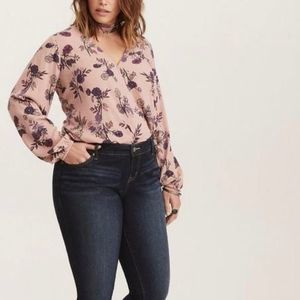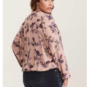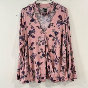 Torrid Pink Purple Floral Chiffon Mock Choker Neck Boho Top 2X