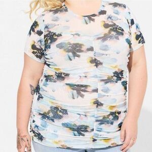 Torrid Women's Plus Size 3X 22-24 Stretch Mesh Crew Neck Ruched Floral Shirt Blouse Top: brand new with tags and from a smoke-free and pet-free home. Ships same or next business day!