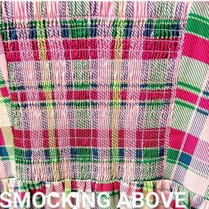 The colors of this pretty dress are Pink,Purple,Mauve, & Green Plaid design. Looks much better in person. Great For Spring or Summer!