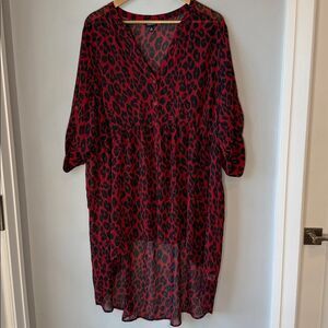 Torrid Plus Size Red Leopard Print Lexie Chiffon Hi-Low Tunic Top
