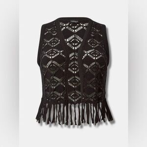 Torrid Pointelle Fringe Open Vest Size 3 3X