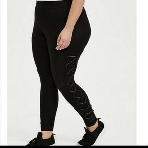 Torrid Premium Leggings with side lace up detail. Thicker fabric and more streamlined look. 95% Cotton 5% Spandex.