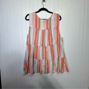 Torrid Rayon Slub Button-Front Tiered Tank Orange green Striped Women's 3xl
