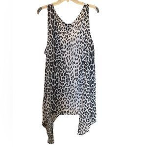 Torrid Sheer Tank Top L Gray Leopard Asymmetrical SharkBite Hem Punk Grunge