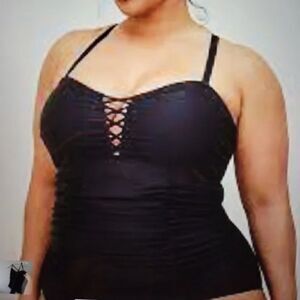 TORRID Black Lattice Ruched One Piece Bathing Suit Size 6X