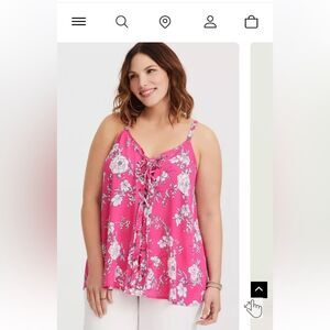 Torrid Sophie- Pink Floral Lace-Up Swing Cami 2X