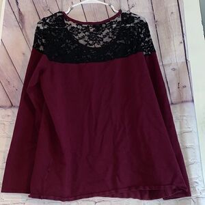 Great condition Size 2 (2X) Burgundy With Black Lace Yoke Long Sleeve