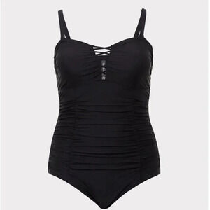 Torrid Swimsuit One Piece Lattice Wireless Slimming Black Plus Size New NWT