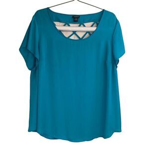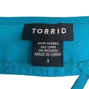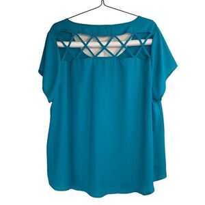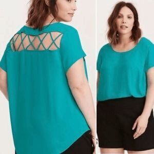 Torrid Teal Georgette Cage Back Cutout Blouse Top Size 1X