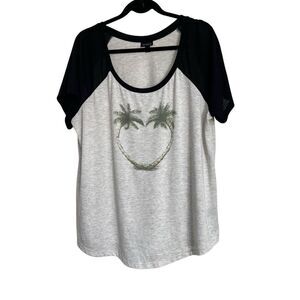 Torrid Top Womens Size 2/2X Gray Palm Tree Raglan Sleeves Soft Knit Casual