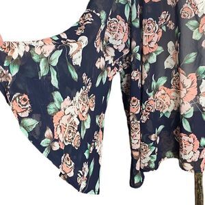 Torrid Wm’s Sz 4 Sheer Black Floral Lace Front Bell Sleeve Pull On Blouse