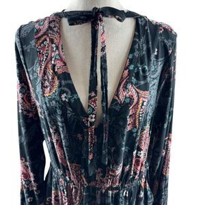 Key Features: Black base with paisley print, lightweight challis fabric, sleeveless design, elastic waistband, flowy skirt