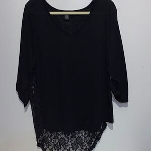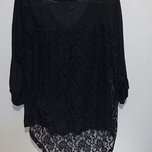Torrid Women's 3/4 Roll Tab Sleeves Laced Back Semi-Sheer Top Black Size 3