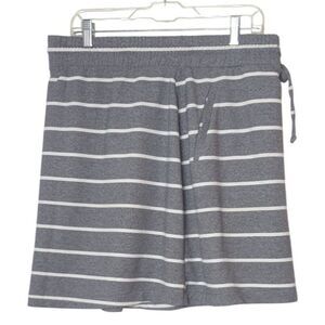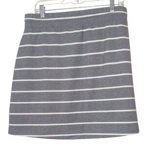 This Torrid skirt offers a blend of comfort and style, featuring a classic gray and white striped pattern.