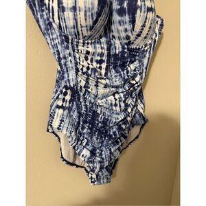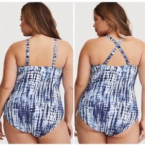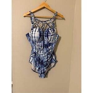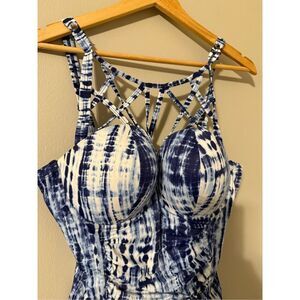 Torrid Women's L Strappy Front Convertible One Piece Swimsuit Blue White Tie Dye