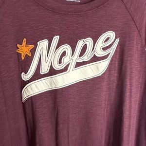 Torrid Women’s Nope Super Soft Slub Boat Neck Varsity Tee Size 2x Burgundy NWT