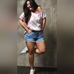 With a tie-dye design and relaxed fit, this off-shoulder tee from Torrid ensures you'll look and feel your best all day long. Relaxed fit - a roomy fit that’s never baggy or boxy. Very nice condition.