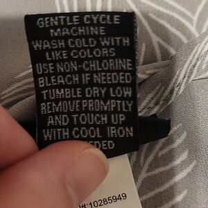 Really nice top. No flaws. Lightweight and flowy. Made with all polyester materials. Tag says size 0. According to torrid website it is equivalent to size 12 L.