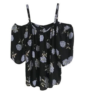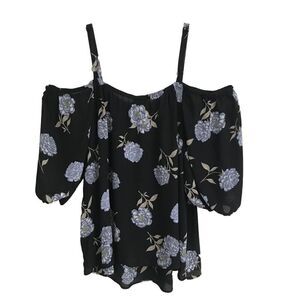Torrid blue floral cold shoulder blouse Size 1X Bust 46 length 32.5 B8