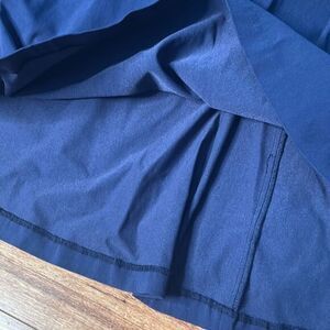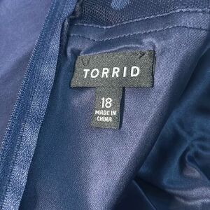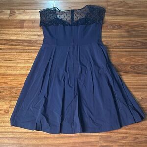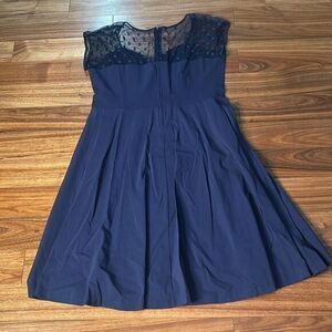 Torrid navy blue dress with polka dot mesh top, fit and flare party dress zipper back has stretch