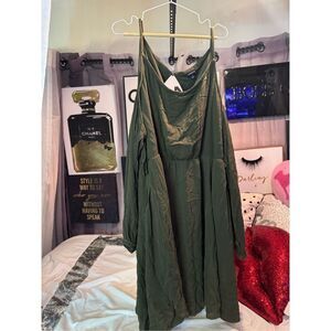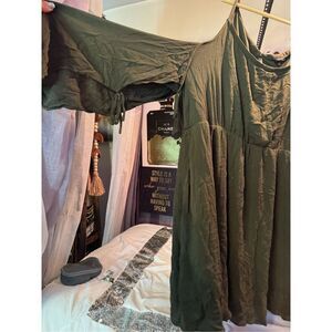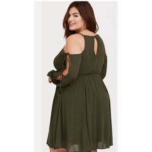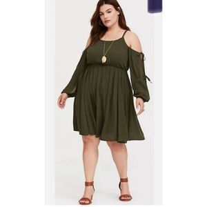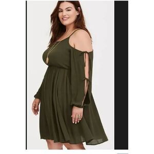 Torrid plus 3x cold shoulder olive green fairycore boho gauze skater dress midi