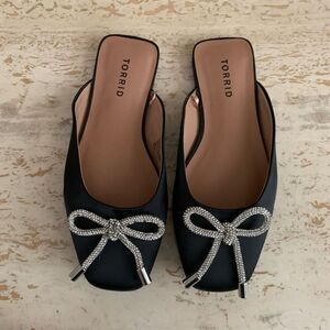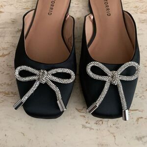 Gently worn, indoors only, maybe twice. Torrid slip on mules with bejeweled bow.