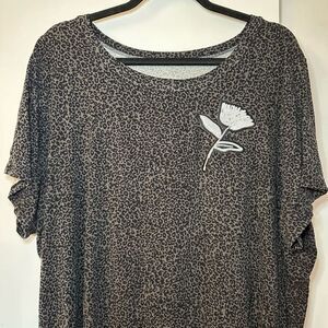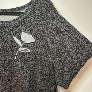 Torrid x Sylvia Mollie Gray Leopard Print White Sequin Flower Tee 3 EUC
