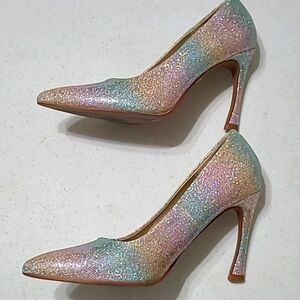 Torta Caliente Rainbow Striped Glitter Heels size 8.5