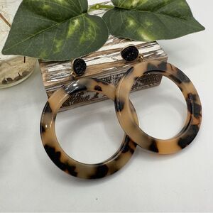 Tortoise Acrylic And Druzy Hoop Circle Earrings