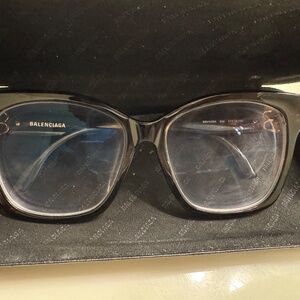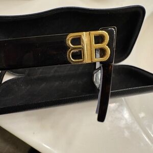 Authentic Balenciaga glasses. Black and brown tortoise frame with large gold B on side. Originally were sunglasses but had prescription placed lenses can be removed and your choice of lenses added. Will come with original Balenciaga case as well. There was another listing however the color was wrong so this is the new correct listing. Any questions please ask!