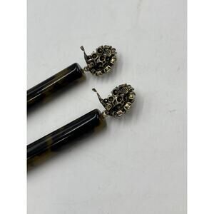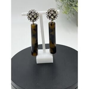 Tortoise Color Acetate Cylinder Earring, Crystal Round Modern Clip On Jewelry