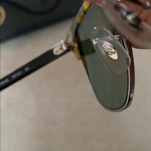 Love the green marble color of the tortoise shell look. Perfect condition. Worn less than 5 times. RB in nose pad and etched in left lense. Luxottica. Comes with case and cleansing cloth!