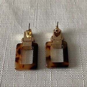 Tortoise shell earrings features gold tone earrings with a rectangle drop in tortoise shell.