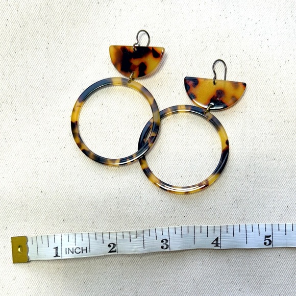 Stylish tortoise shell hoop earrings with nickle hooks.