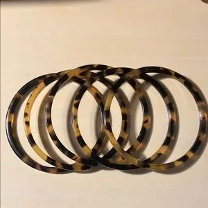 Elevate your style with this set of 5 tortoise shell patterned bangles. Perfect for adding a touch of elegance to any outfit.