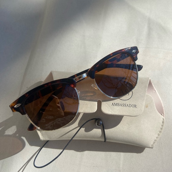 Elevate your style with these tortoise shell sunglasses. Perfect for any occasion, they offer a chic and timeless look. Worn once.