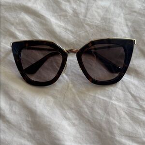 Stylish tortoise shell Prada sunglasses perfect for elevating any occasion. Add a touch of elegance to your look. Comes with Prada case.