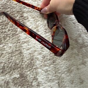 Saint Laurent SL 557 tortoise shell sunglasses with green lenses. Perfect for any occasion.