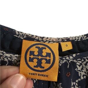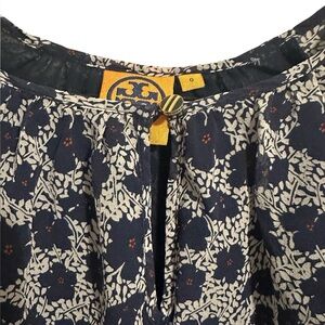 Tory Birch 100% Silk Womens Blouse Blue Floral Tunic Keyhole Neck Top Size 0