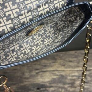 Tory Birch Amanda Black Mini Clutch Crossbody Gold Chain Removable Strap Leather