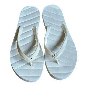 Tory Birch Kira Flip Flops Sandals Cream Ivory color size 11 M Logo .
