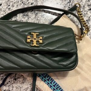 Kira Chevron Small Flap Shoulder Bag, used once. Forest green. Includes dust bag.