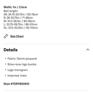 Tory Burch 1” Miller Denim Belt In Powder Blue
